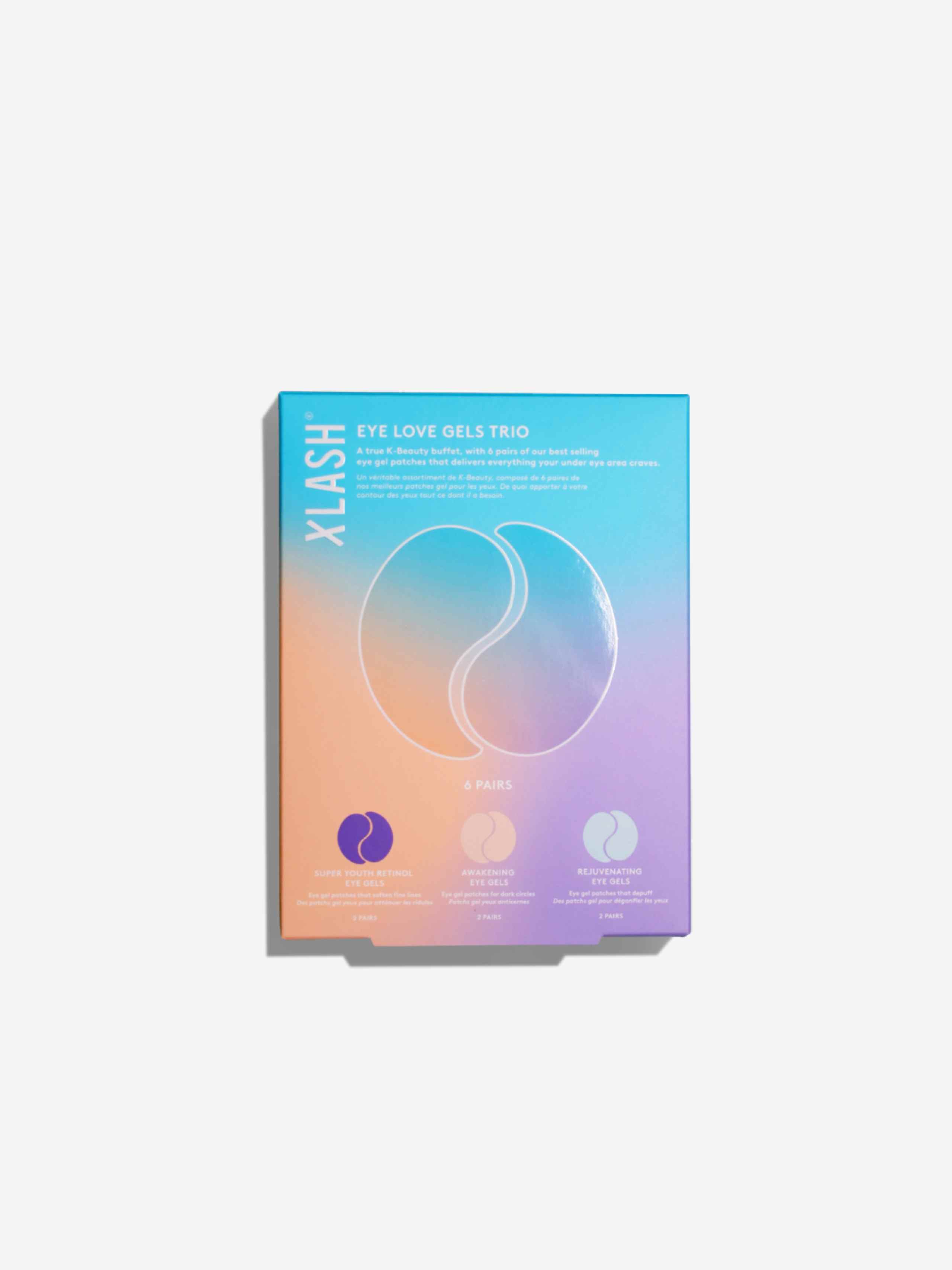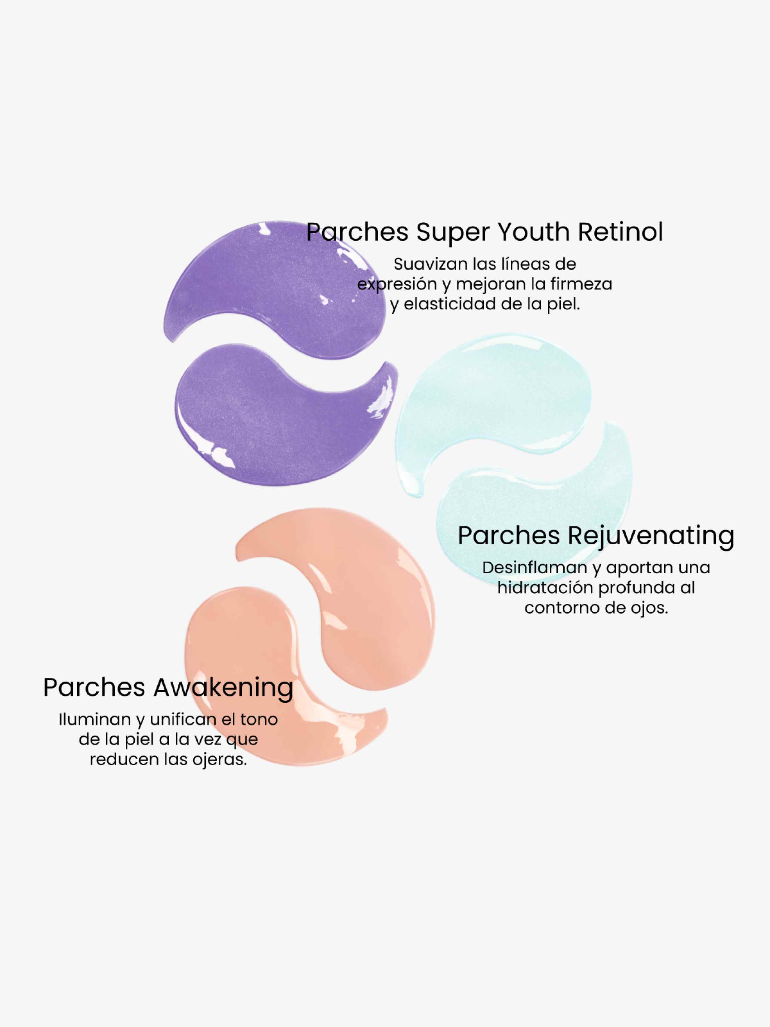 Super Youth Eye Gels 1 pair: Aqua, Glycerin, Methylpropanediol, Chondrus Crispus Extract, Retinol, Bakuchiol, Acetyl Hexapeptide-8, Caffeine, Allantoin, 1,2-Hexanediol, Glyceryl Glucoside, Glyceryl Caprylate, Ceratonia Siliqua (Carob) Gum, Hydroxyacetophenone, Cellulose Gum, Xanthan Gum, Potassium Chloride, PEG-60 Hydrogenated Castor Oil, Sucrose, Kaolin, Synthetic Fluorphlogopite, Undecane, Tridecane, Tocopherol, CI 77007, CI 77499, CI 77891.