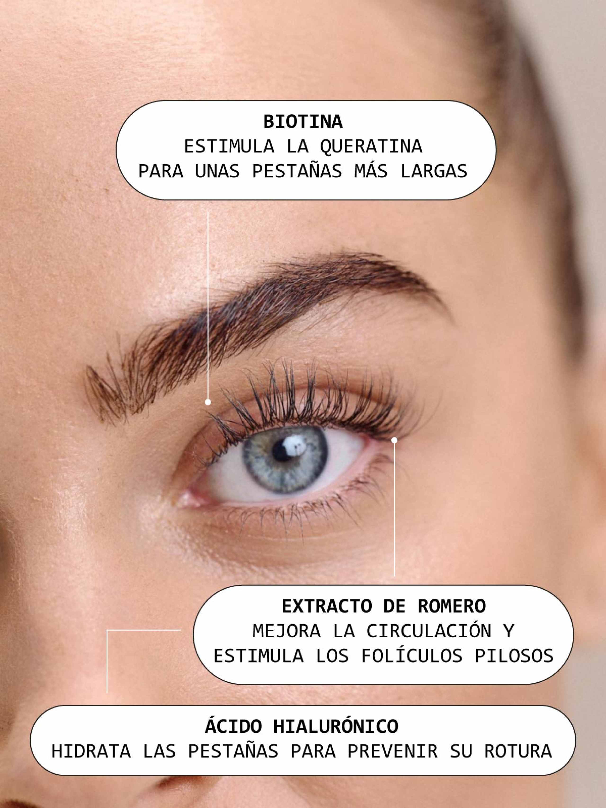 - Alarga y fortalece las pestañas desde la raíz.